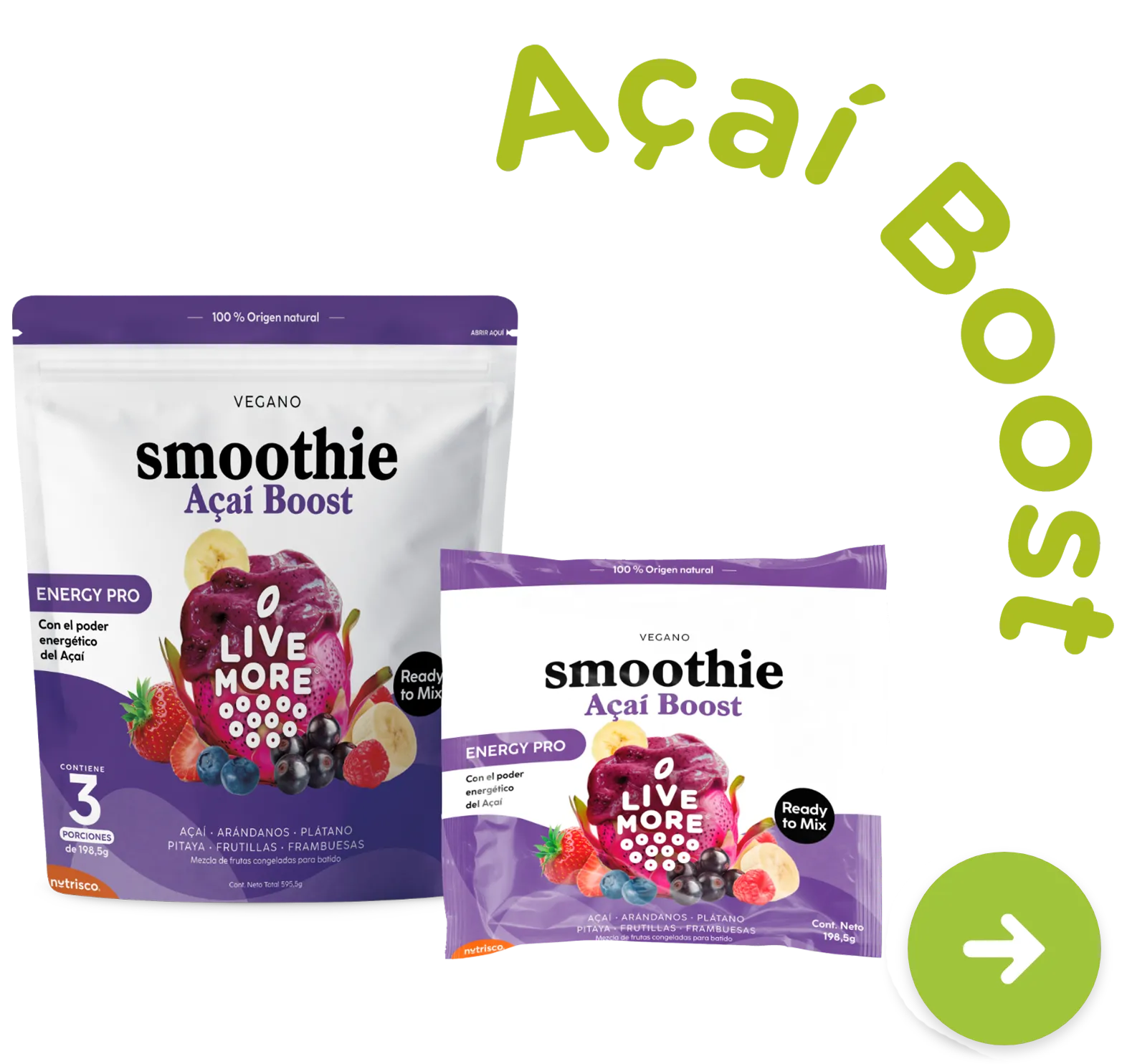 Encuéntralos en sus dos formatos: 198grs y 594grs. (3 porciones).